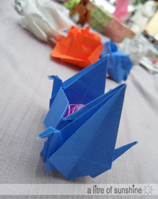 Another new member taught us to fold a box with two cranes on two sides. It took time us a long time to fold it because we had to talk to other students, so I don't remember the steps :(